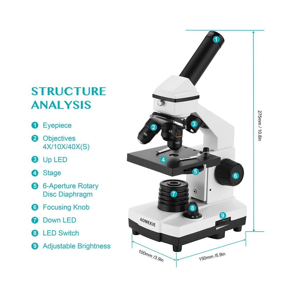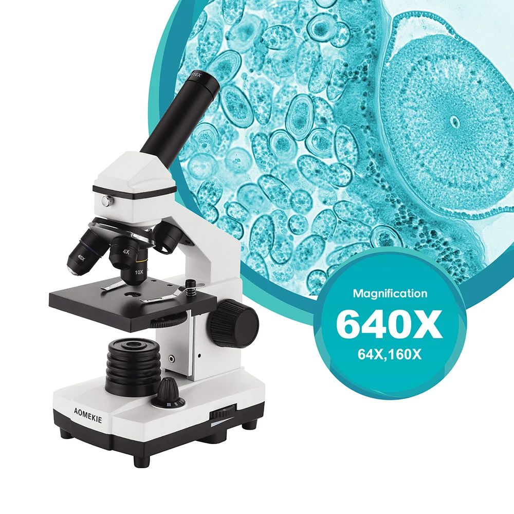Big Discount AOMEKIE 64X-640X Professional Biological Microscope Up/Down LED Monocular Microscope for Students K