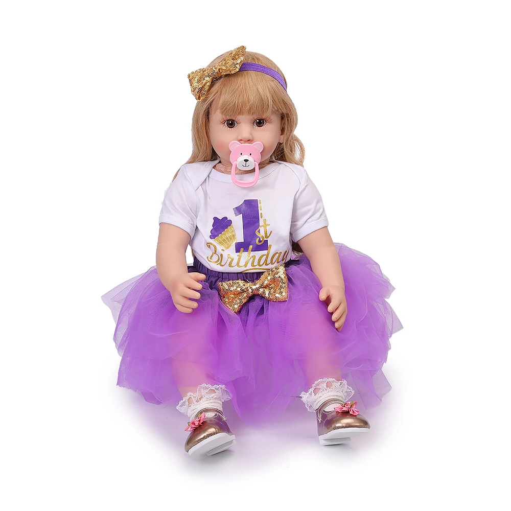 Wholesale 58CM Silicone Soft Reborn Baby Dolls Realistic Princess Girl Baby Doll Long Hair Reborn Toddler Bir