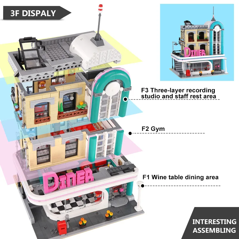 Hot Product DHL15037 Building Compatible Legoing 10260 MOC Downtown Diner Assembly Building Block Bricks Childr
