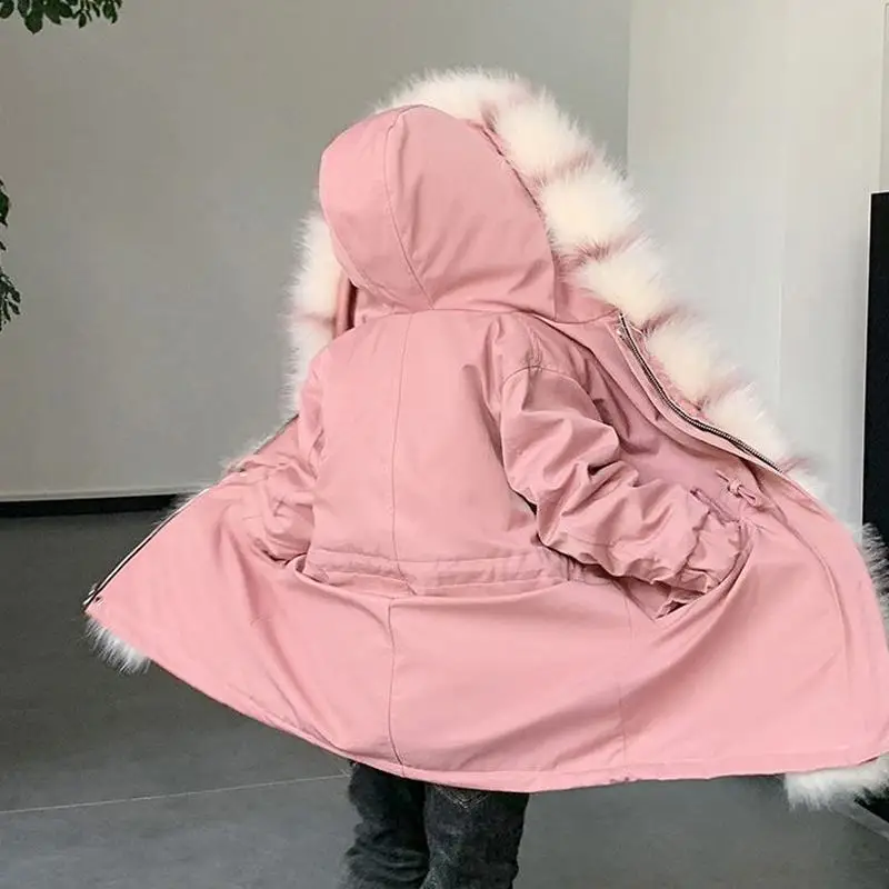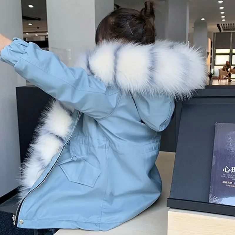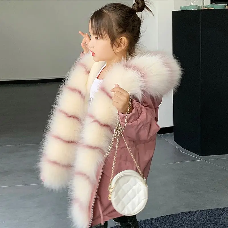 Big Sale 2019 Winter Kids Girls Thicken Warm Faux Fox Fur Detachable Liner Parkas Children Girls Hooded Jack
