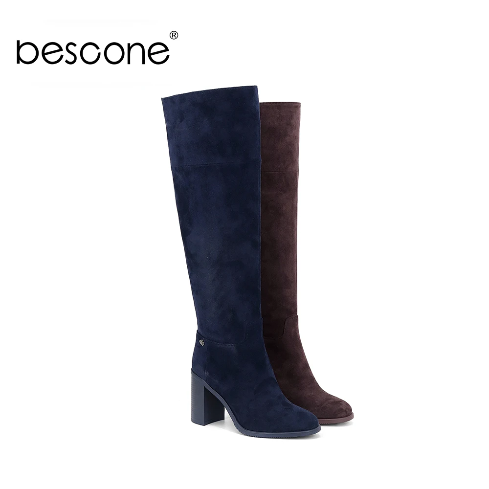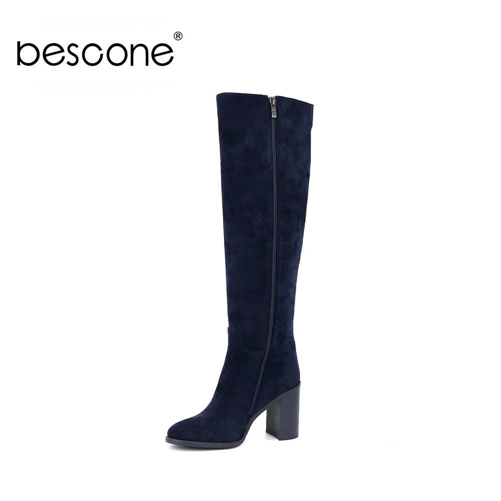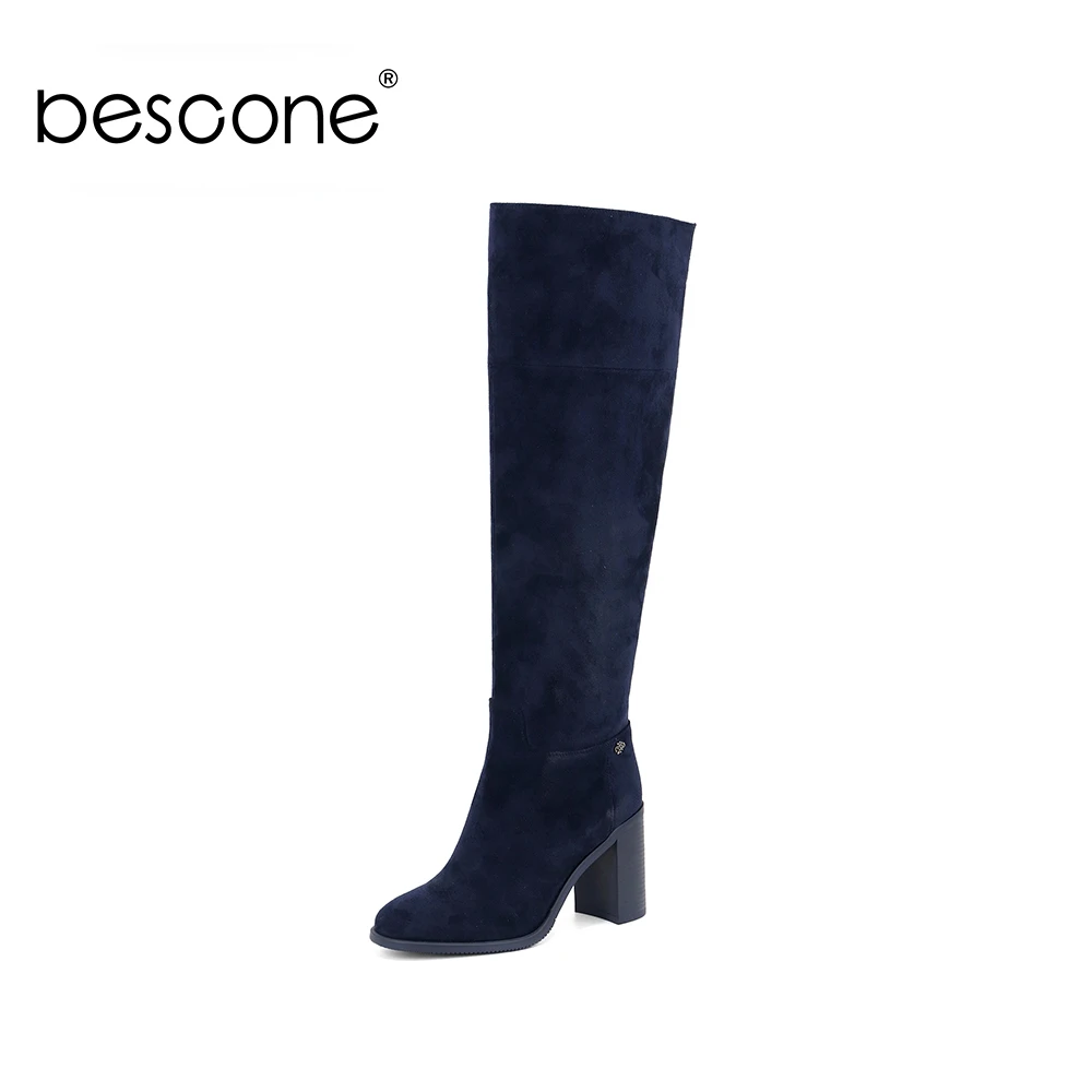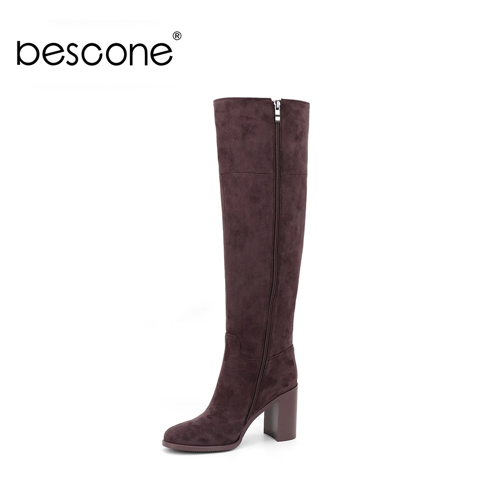 Wholesale BESCONE Stylish Square Heel Ladies Boots Basic 9 cm Super High Heel Handmade Shoes Sexy Pointed Toe