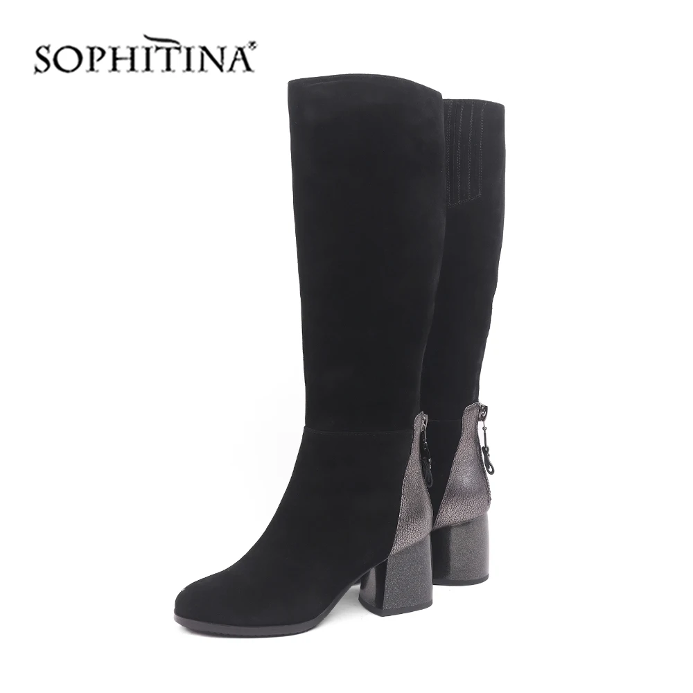 New Arrival SOPHITINA Fashion Women's Boots High Quality Kid Suede Comfortable Round Toe Square Heel Special Sh