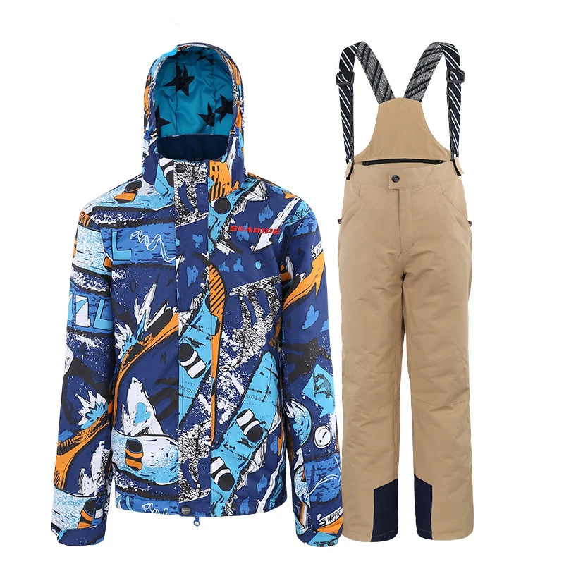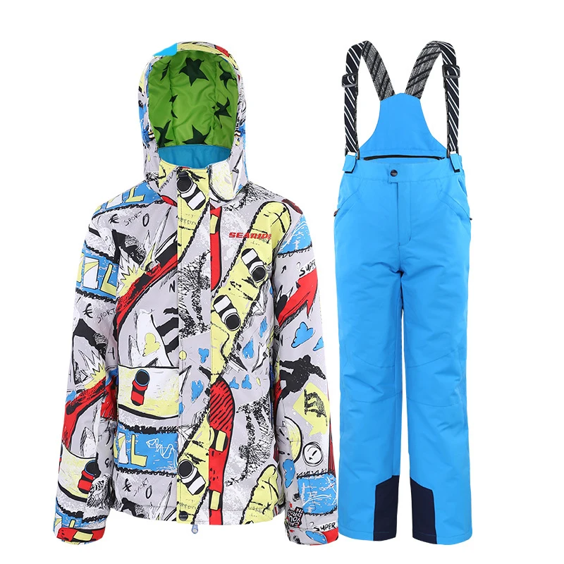 Wholesale 2019 Winter Kids Ski Suits Hooded Warm Snow Suit for Boys Waterproof Jacket Overalls Children's Sno