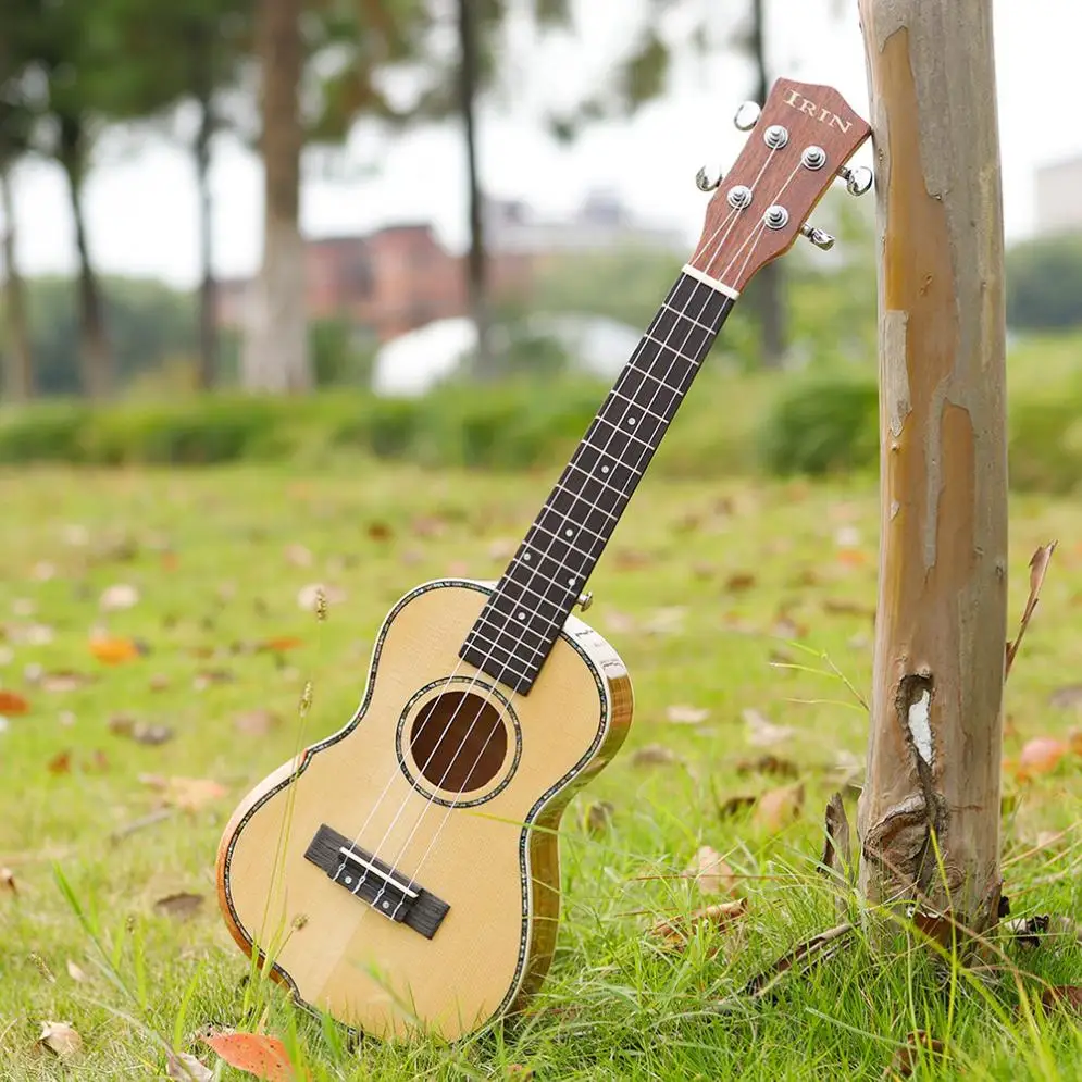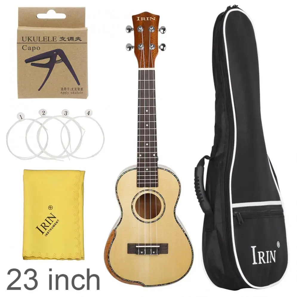 Buy 23 Inch Veneer Spruce Wood Ukulele Hawaiian Guitar Bevel Design with Gig Bag Capo Strings Cleaning